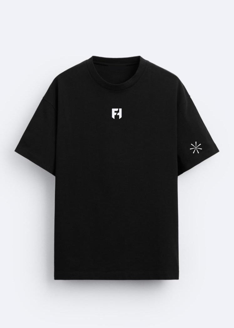 - Box tee with FH Logo print on the front + screen print on the sleeve + back